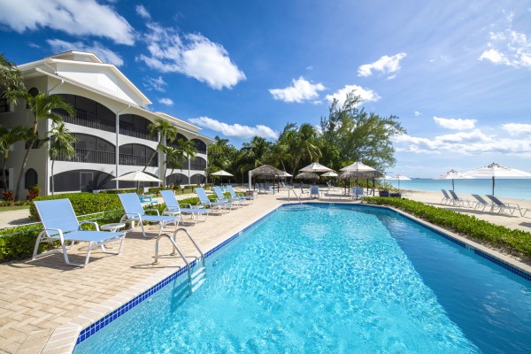 The Heritage Club is comprised of 18 independently owned 2 bedroom / 2 bathroom condos, all with ocean views from private screened-in patios. We are situated on a quiet and pristine stretch of Seven Mile Beach where the white sands stretch into waist deep turquoise waters. Soak in the sun from one of our beach loungers at the pool deck or in the sand, or enjoy a shaded view of the sea from a thatched cabana or umbrella.